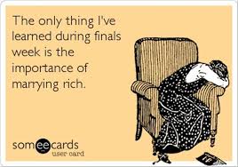 Three papers, two finals, and one midterm down. Two finals, one research paper to go. Here's to hoping I still have a future ahead of me after Friday.